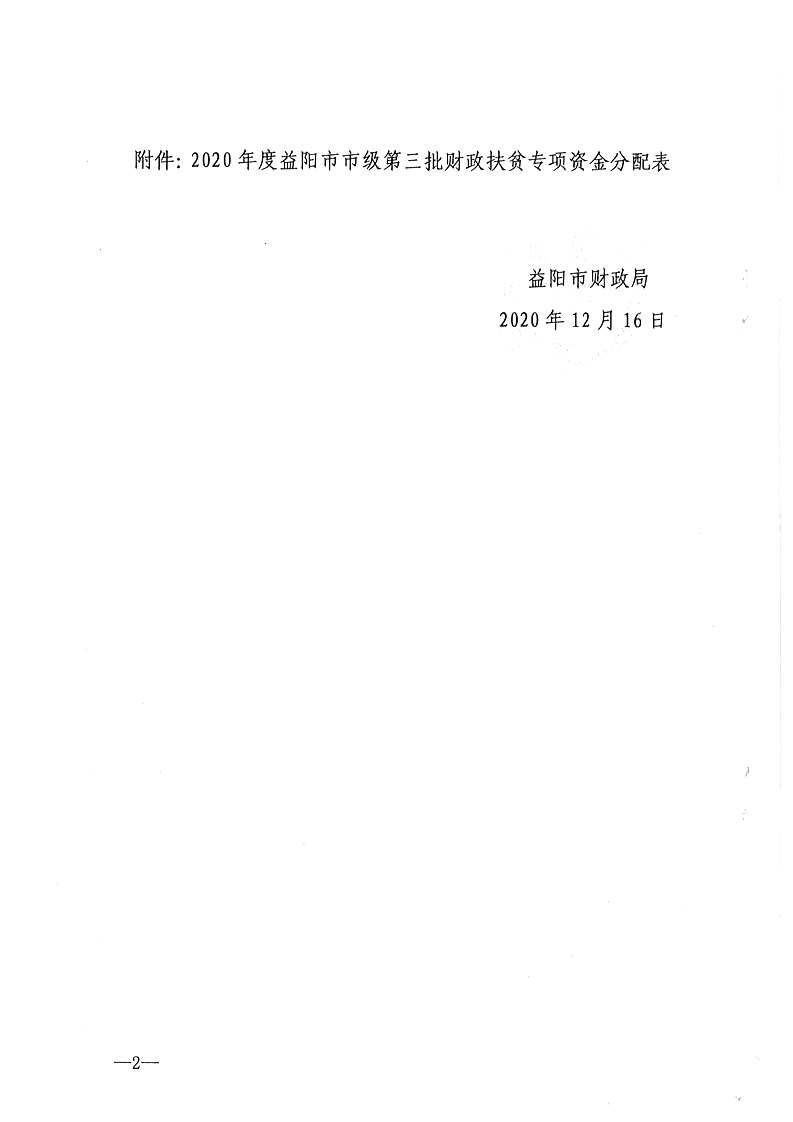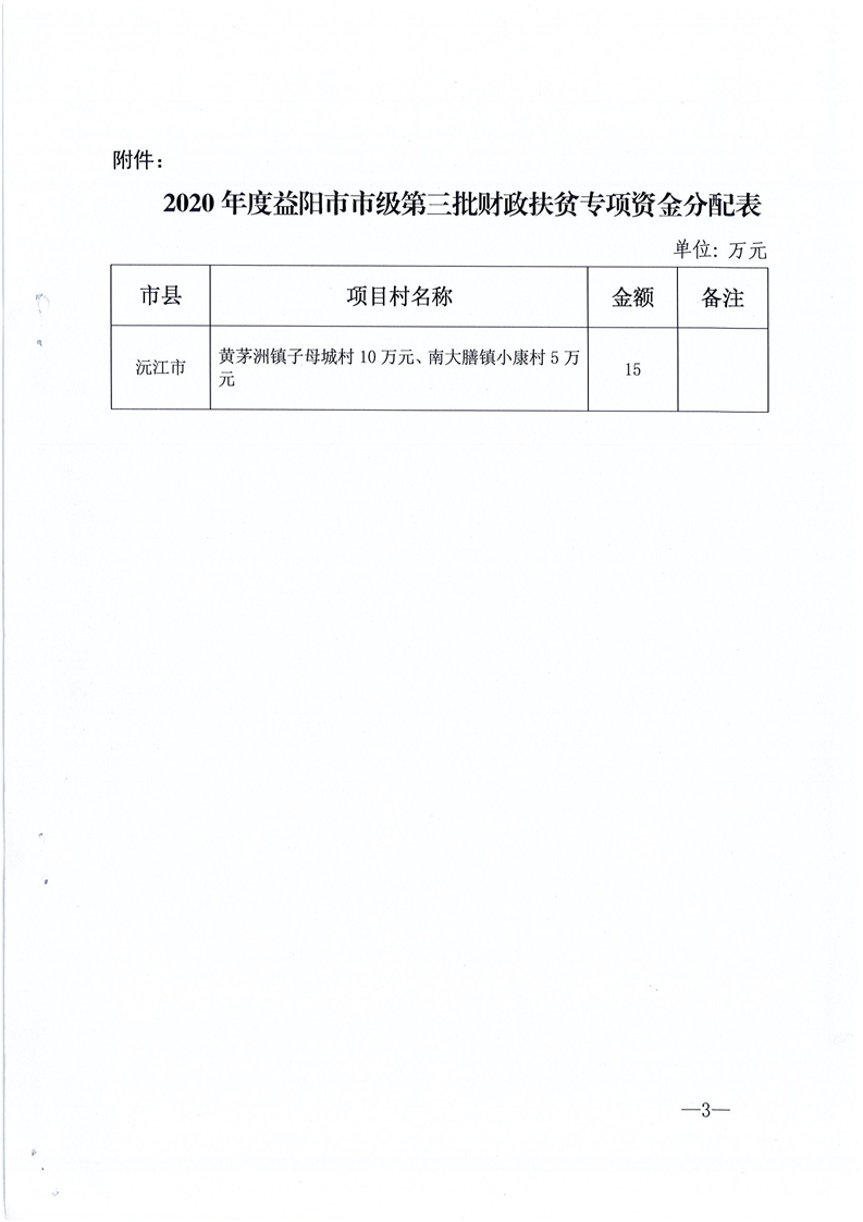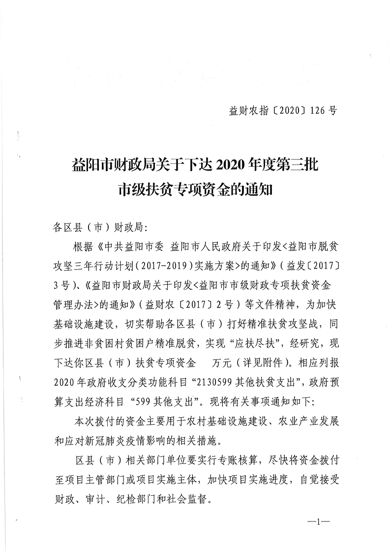 益财农指[2020]126号 益阳市财政局关于下达2020年度第三批市级扶贫专项资金的通知
