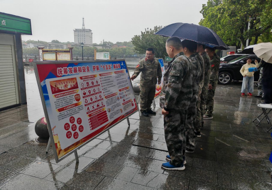 琼湖湖畔,绵绵春雨。4月15日,沅江市国防动员办公室组织全体人员身着“迷彩绿”会同沅江市人武部人员,开展以“统筹发展和安全 护航“十五五”新征程”为主题的第11个全民国家安全教育日活动。