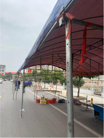 “小李,对于你亲人的去世我们深表哀悼,但是你把这大棚子搭在主干道路上,既会给村民们的出行安全带来隐患,也违背了沅江市开展“刹人情歪风整治”专项行动的要求,与镇里倡导“婚事新办、丧事简办”的文明理念背道而驰。希望你理解配合城管队员赶紧把棚子拆掉,尽快恢复道路秩序。”沅江市阳罗洲镇纪委书记文俊对正在筹备丧事的社区居民小李及时提醒道。