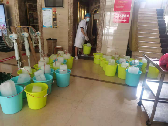 由于疫情防控观察需要,指定隔离宾馆不能开空调,核酸采样人员每天要穿着厚厚的工作服,顶着炎热为隔离人员采样检测,一些医护人员甚至出现头晕、呕吐的中暑症状。古有雪中送炭,今有暑中送冰。8月3日起,沅江市文旅广体局紧急协调2000多公斤冰块,每天两次送至定点隔离宾馆为医护人员和隔离人员降温。