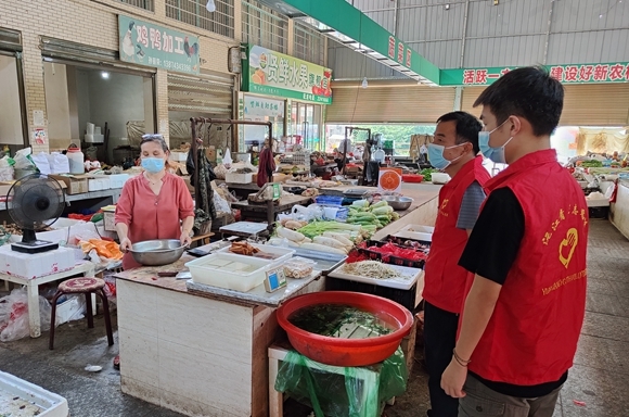 当前,是抗击新冠疫情的关键时期,针对集镇农贸市场人员复杂、人流量大、流通品种多、风险高等现状,新湾镇强化集贸市场管控,组织党员干部、志愿者全力守好“菜篮子”,为居民提供安全、放心的采买环境,保障居民健康和生命安全。