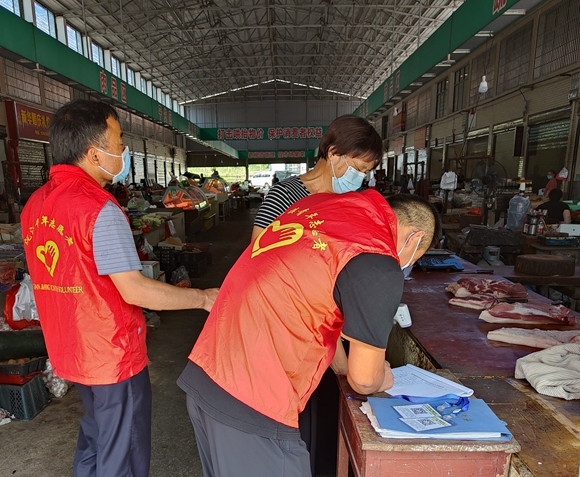 加强值班值守。在市场出入口设立检查岗,进入市场内所有人员一律佩戴口罩,并在入口处设立测温点,安排专人值班,对进入市场的村民查验健康码、行程码、测量体温、询问旅居史。同时,坚持每天对市场经营户进行体温检测并查看健康码,做好排查登记。