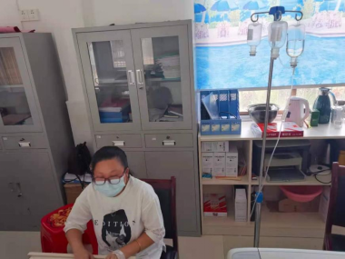 防疫紧迫,兢业坚守的干部“连轴转”是常态,8月13日,新河口村村干部周维在岗时突感身体不适,但为如期完成承担的防疫任务,她秉持“轻伤不下火线”的态度,向医生申请将输液室移至办公室。