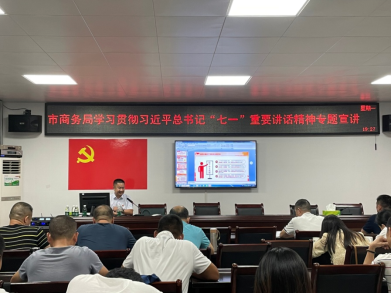 9月13日,市商务局组织开展学习贯彻习近平总书记“七一”重要讲话精神专题宣讲。此次宣讲会邀请市委宣讲团成员、市委宣传部三级调研员唐顺祥同志为系统党员干部作专题宣讲报告。