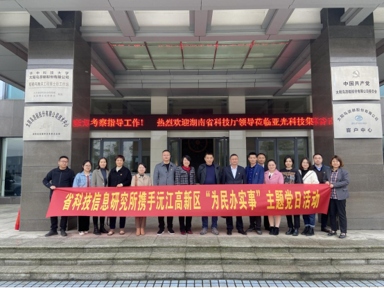 为推动党史学习教育持续性走深、走实,扎实开展“我为群众办实事”活动,近日沅江高新区携手省信息科学技术研究所走进亚光科技集团股份有限公司开展“科技情报进企业 园区组队送对策”为民办实事主题党日活动。