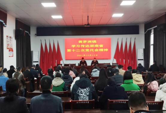 12月13日,黄茅洲镇召开全体干部大会,传达学习中国共产党湖南省第十二次代表大会精神,镇机关全体班子成员、机关干部,站所负责人参加了会议。