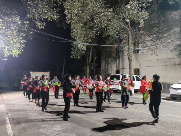 每到下午5点左右,老老小小便会赶忙吃完晚饭,聚集在社区文化广场前,开启丰富多姿的夜生活。只见,有的背着腰鼓,挥着鼓棒,舞动的身姿别样动人;有的化身围观群众,接连喝彩,拍手叫好。威风雄浑的锣鼓,引人沸腾的鼓点,敲打出今日美好幸福的生活,奏响了他们心中的幸福最强音。