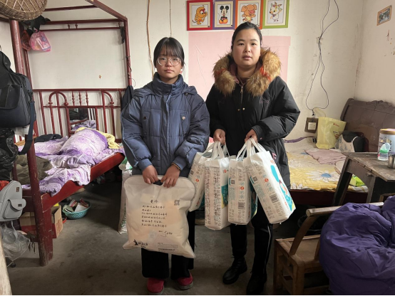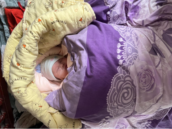 杨菊芳夫妇均为盲人,一个月前杨菊芳早产生下三胎儿子后陷入重度昏迷,至今未醒,医院已多次下达病危通知书,大女儿19岁,现在医院照顾昏迷母亲,二女儿13岁,放寒假在家照顾盲人父亲和新生儿弟弟,家庭十分困难。镇妇联得知此情况后,采购尿不湿、棉衣袜、毛巾、纸巾等婴儿物资,前往杨菊芳家慰问看望。