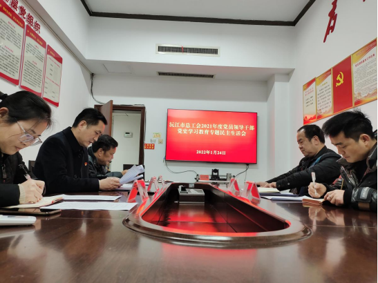 1月24日,市总工会召开党史学习教育专题民主生活会,市委党史学习教育第十巡回指导组组长曹立、组员王明哲到会指导。会议由党组书记、常务副主席汤建军主持,全体班子成员参加会议。