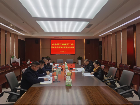 1月29日,沅江高新区党工委班子召开党史学习教育专题民主生活会,会议由党工委书记李选才主持,全体班子成员参加,市委党史学习教育第四指导组成员沈克亮、周翠娥到会指导。
