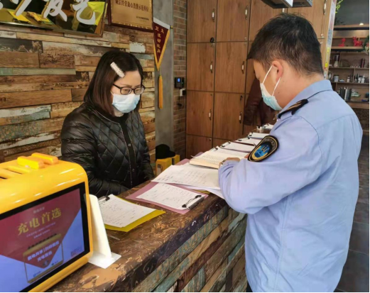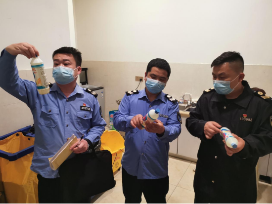 住宿场所疫情防控检查(左一为肖尚东)
