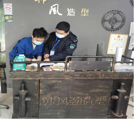 美容美发场所疫情防控监督检查(右一为刘佳迎)