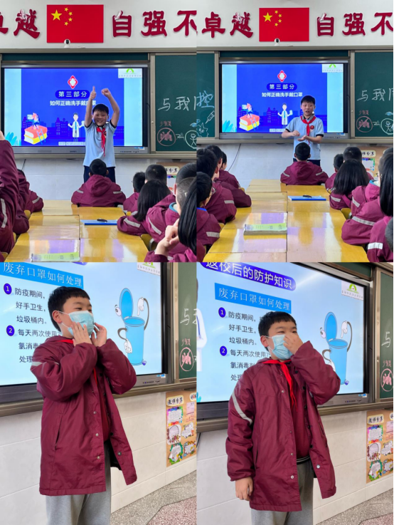 注重心理疏导,开展班级篮球联赛、毛毛虫竞赛等竞技活动为师生释压,通过云端德育大课堂、主题班会等形式,组织师生学习科学戴口罩、保持一米社交距离、正确洗手方式、注意咳嗽礼仪、养成健康生活方式等日常防护知识,全力守护师生生命安全和身体健康,筑牢校园疫情防线。