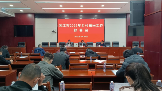 3月29日,沅江市召开2022年乡村振兴工作部署会,市人民政府副市长谢贵出席会议,市政府办党组成员、副主任游斌主持会议。