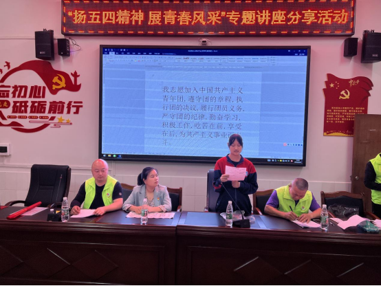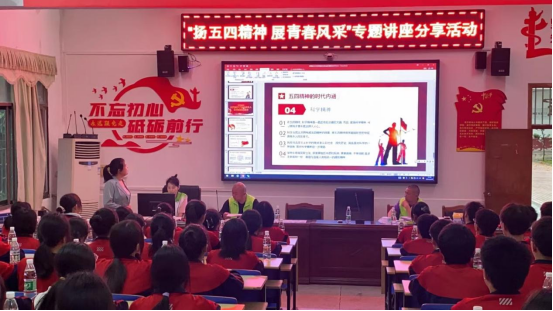 镇团委第一书记洪淳上了一堂《五四精神 传承有我》的主题团课,她从什么是五四精神、五四运动的历史意义、五四精神的时代内涵、时代赋予了当代青年人怎样的历史使命、弘扬五四精神,建功新时代五个方面对五四精神进行了阐述。她指出:“共青团是党的助手,鲜红的团旗是青年人的希望。过去,是由于她引导革命前辈,同国内外反动势力,进行英勇地搏斗,革命的种子,播撒在中华大地上。如今,是她引导着我们,团结在党的周围,奋斗在社会主义的康庄大道上。当代青年一要志存高远,坚定理想信念。二要虚心好学,不断锤炼本领。三要担当有为,担负时代使命。”