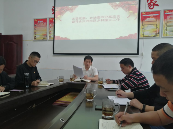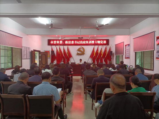 5月19日,沅江市委常委、政法委书记高应良到漉湖事务中心指导基层党建暨乡村振兴工作,并带来了一堂以“坚决同邪教迷信、‘黄赌毒’、电信网络诈骗等不法行为作斗争”为主题的党课。
