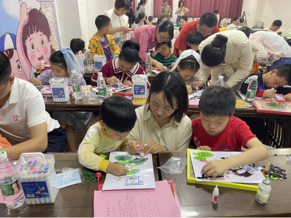 家长与孩子们一起用各种颜色的扣子,共同张贴了“青莲”图画、廉洁字词,营造清正廉洁的活动气氛,帮助孩子们从小树立清廉之心,从亲子活动中感受家教家风的力量。