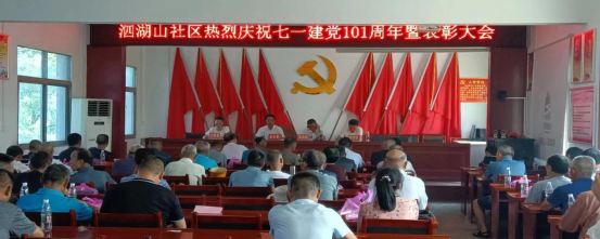 6月29日上午,为进一步增强党组织的凝聚力和战斗力,推进“乡村振兴”更快更好发展,激励广大党员干部高扬旗帜,坚定信念,继承和发扬党的光荣传统。泗湖山镇泗湖山社区组织全体党员举行庆祝建党101周年暨表彰大会。
