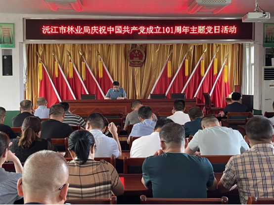 7月1日上午,沅江市林业局机关党委在局机关四楼会议室组织召开庆祝中国共产党成立101周年主题党日活动,全体机关党员、干部职工和二级机构负责人共53人参加会议。
