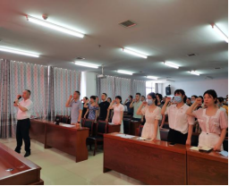 “我志愿加入中国共产党,拥护党的纲领,遵守党的章程,履行党员义务……”在郭书记的领誓下,全体党员面对鲜红的党旗,高举右手,庄严宣誓。铿锵有力的宣誓声,表达了沅医党员干部不忘初心、牢记使命、勇于担当、甘于奉献的决心和信心。