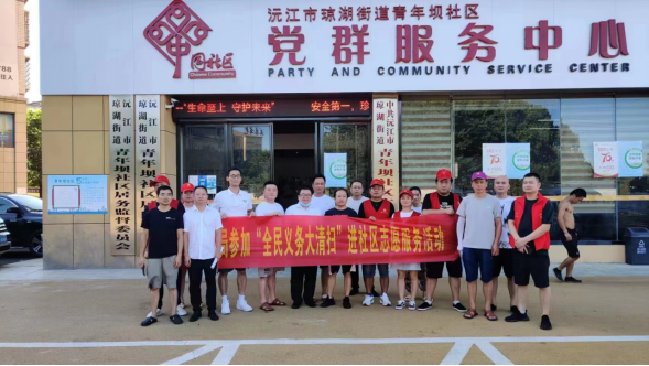 会后,10多名党员赴琼湖街道青年坝社区开展义务大扫除志愿服务活动。