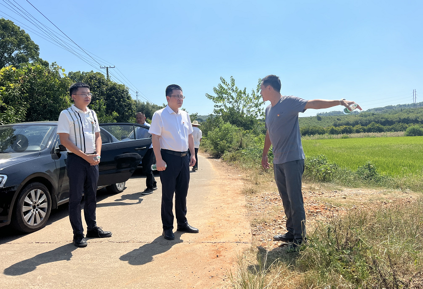 在南嘴镇蠡山村,龙旺宇详细询问村党组织书记和农业水利部门工作人员抗旱情况。他指出,此次高温天气持续时间长,要做到科学调度、科学抗旱,保障粮食安全。