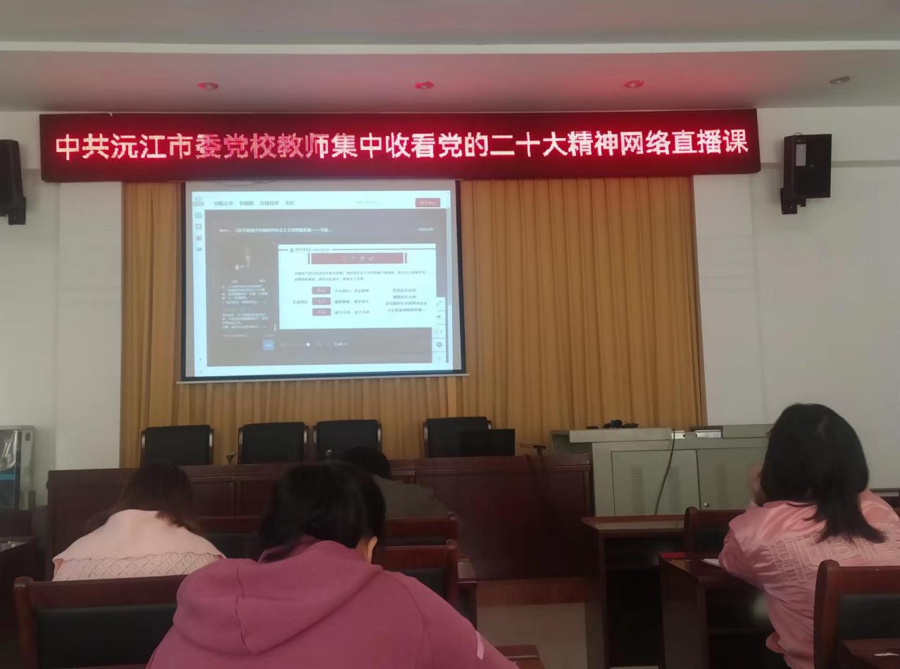 11月1日至2日,沅江市委党校全体教师在小报告厅集中收看党的二十大精神网络直播课。