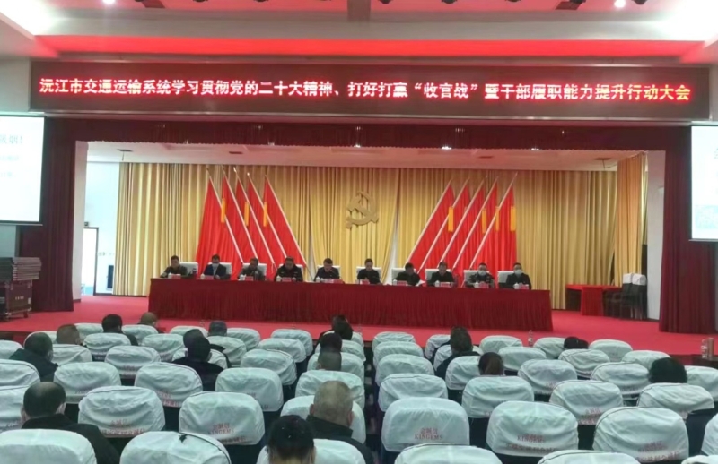 12月11日,市交通运输局召开深入学习贯彻党的二十大精神、打好打赢“收官战”暨干部履职能力提升行动大会。会议由局党组书记、局长刘博文主持,交通运输系统全体党员干部职工、全市道路运输企业和水上运输企业主要负责人参会。
