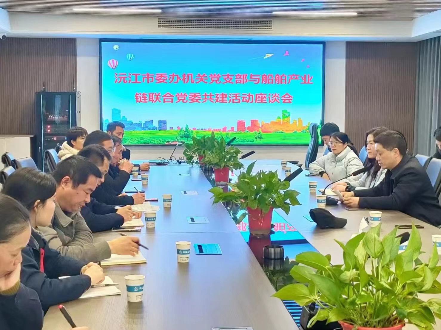 在座谈会上,市委办党总支书记游立斌介绍了市委办机关支部工作开展情况,并就如何进一步强化共建交流和常态化联系企业工作提出建议。随后,双方党员就党员队伍建设、企业生产经营等内容进行了热烈交流。通过相互交流、相互学习,增强了党建活力,强化了以党建引领赋能船舶产业链,助力我市船舶产业高质量发展。
