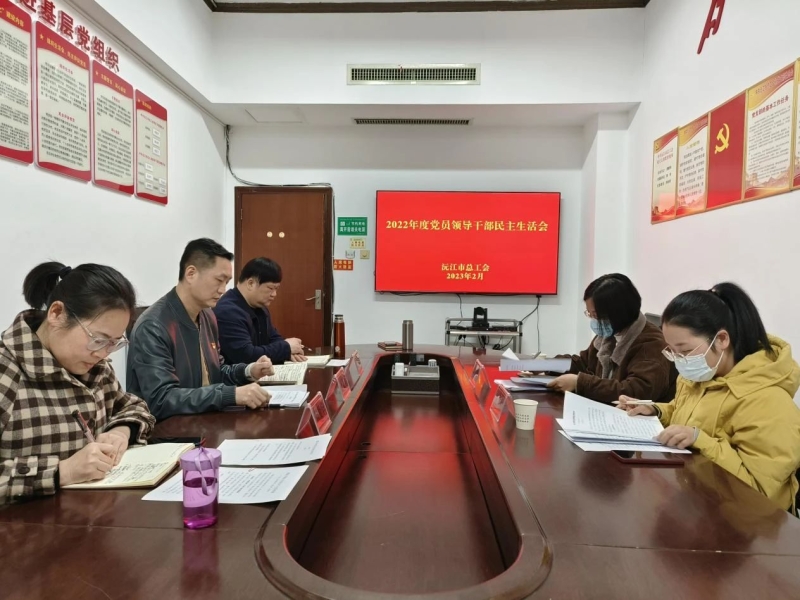 2月20日,市总工会党组班子召开2022年度民主生活会,党组书记、常务副主席汤建军主持会议并作总结发言。市总工会全体班子成员参加,市委第十督导组成员谭立霞、王欣到会指导。