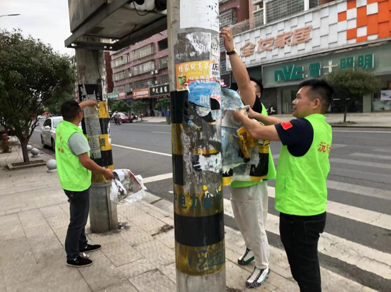 活动中,志愿者们携带铲子、水桶、抹布等工具,对镇区主干道隐藏的各类垃圾、杂物进行清扫,对墙面、电线杆上的小广告进行了重点清除,同时向周边居民宣传创文相关知识,引导居民爱护环境,自觉投身到文明创建活动中去。