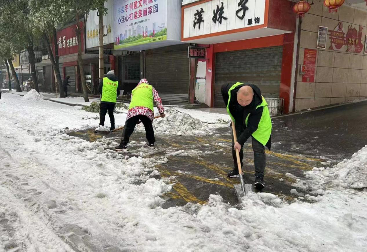 草尾商会党支部:大雪纷飞迎新年,扫雪除冰保平安