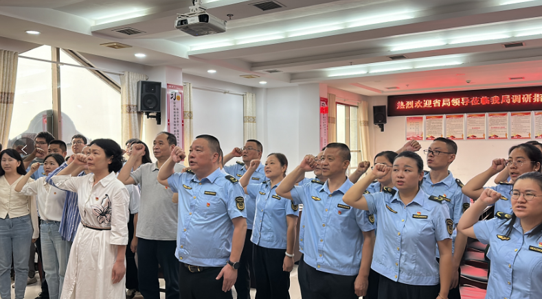 在交流会议现场,双方首先进行了党建业务交流,结合结对共建一年来自身党建工作实际,交流党组织建设情况,总结联建工作开展以来取得的进展和成效。接着,省局注册登记局党支部书记汪霖给大家讲了一堂生动的微党课。汪霖同志围绕习近平总书记在党的二十届三中全会上的重要讲话精神,从全会《决定》主要内容、党中央重大战略决策的若干思考、对市场监管领域作出的重要改革部署、如何抓好贯彻落实等方面,做了生动、系统、深刻的阐述,让在座同志们深受鼓舞和启发,对党的二十届三中全会精神有了更为深刻的认识和理解。入党积极分子代表也在活动中分享了自己申请入党的感悟,表示将以党员的标准严格要求自己,争取早日成为一名合格的共产党员。随后,在汪霖同志的领誓下,双方支部党员集体重温入党誓词,回忆入党初心。