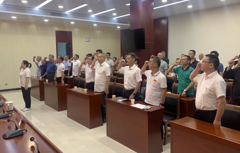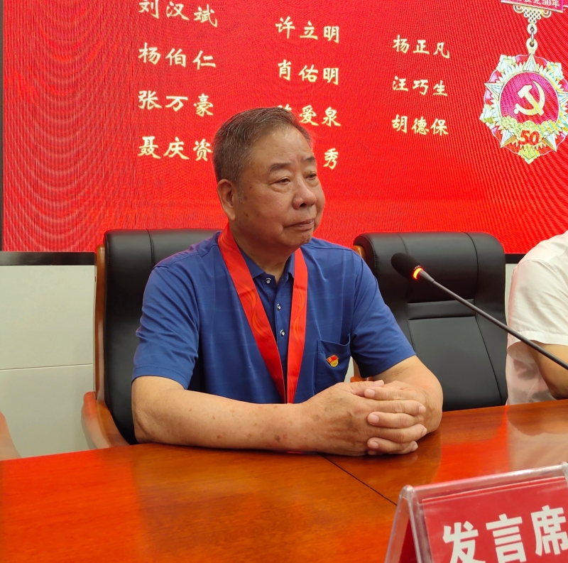 会议在雄壮的国歌声中拉开序幕,全体党员面向党旗高举右手重温了入党誓词,随后雷越毅为“光荣在党50年”的老党员颁发纪念章并合影留念,纪念章获得者代表和党员代表分别作了发言。