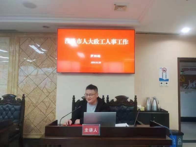 1月8日上午,市人大2024年第一期人大讲堂开讲,市人大常委会社会建设委员会副主任委员罗四维授课,市人大常委会副主任陈群力主持。
