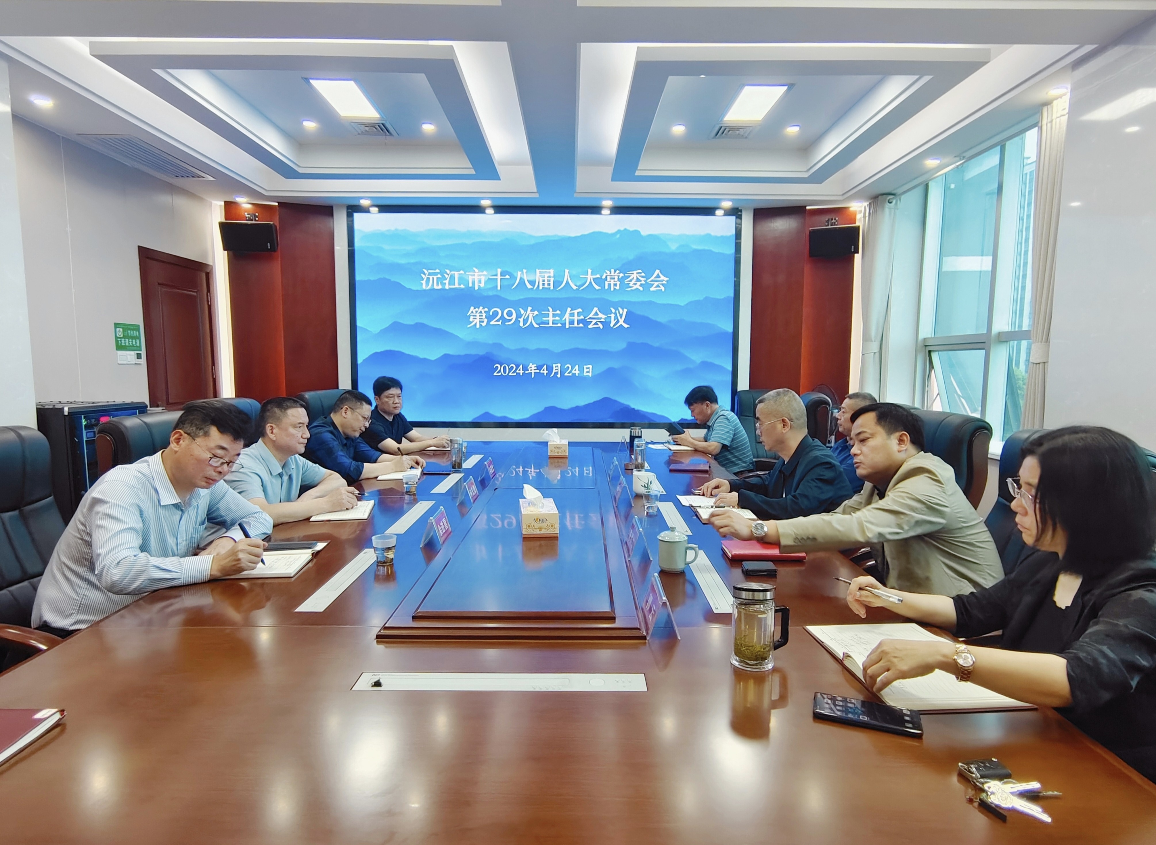 4月24日,沅江市十八届人大常委会第29次主任会议召开。市人大常委会党组副书记、副主任谭洪祥主持会议,副主任陈群力、郭照辉、郭云出席会议。
