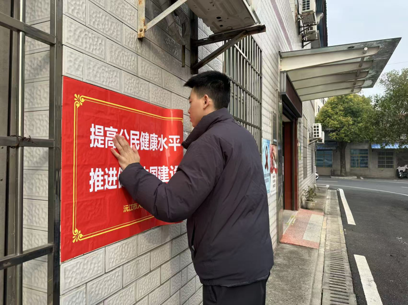 精心组织宣传,营造健康法治氛围。活动现场,代表与工作人员在镇卫生院、血防院等公共服务场所醒目位置,张贴了印有“以人民为中心发展医疗卫生与健康事业”“提高公民健康水平推进健康中国建设”等标语的红色宣传海报,以简洁有力的文字传递法律核心精神,形成视觉引导,增强宣传感染力。