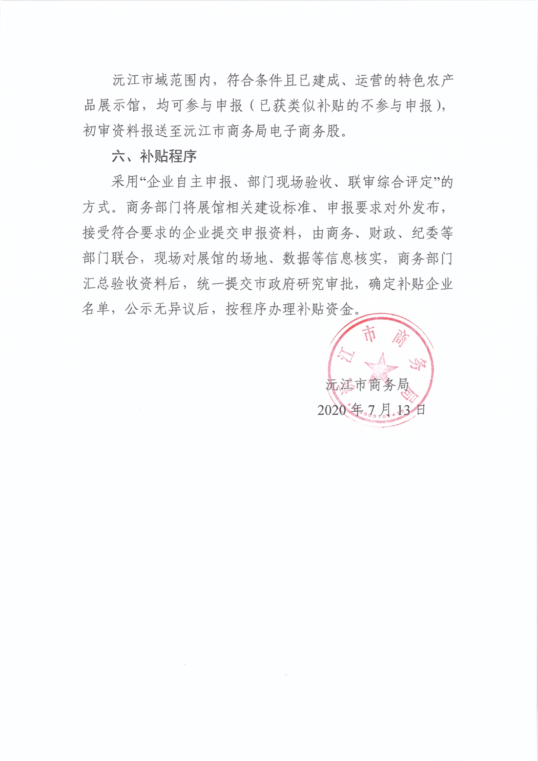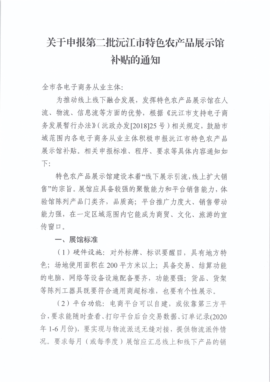 关于申报第二批沅江市特色农产品展示馆补贴的通知