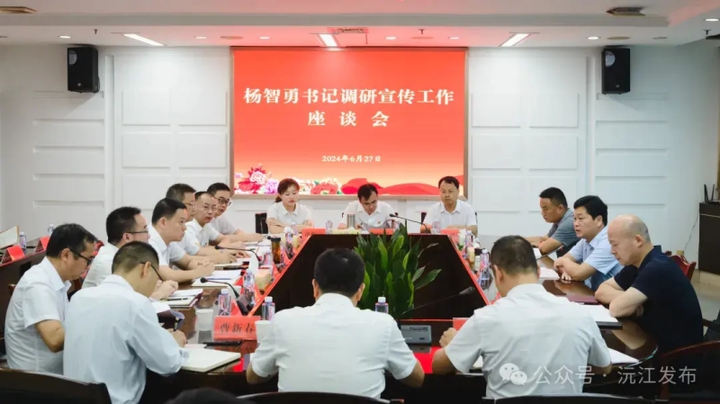 6月27日,沅江市委书记杨智勇赴市委宣传部调研。市委常委、市委办主任周军,市委常委、宣传部部长宋铁山参加调研。