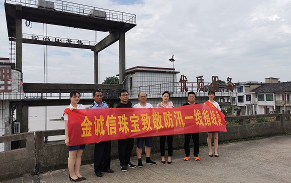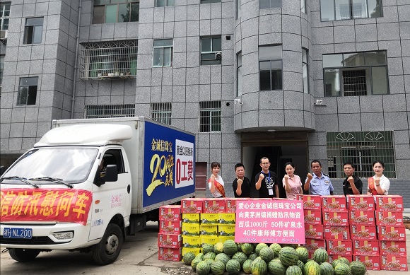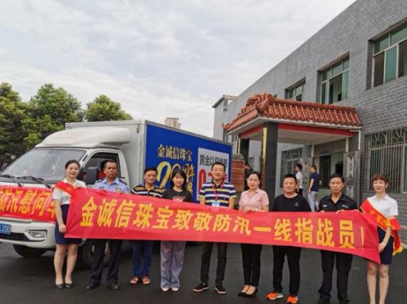 7月11日,金诚信珠宝组织员工分赴沅江琼湖街道,黄茅洲镇等重要防洪要塞送上2万元慰问物资,以表达对当前沅江市防汛形势的关切与支持。