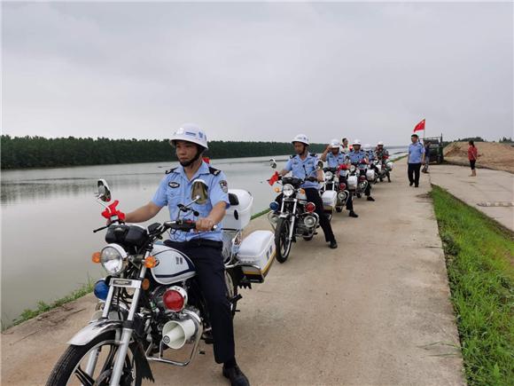 “作为巡逻车队的一员,我既感到荣幸也感到压力,但更多的是责任。”7月10日下午,在沅江市目平湖垸的防汛大堤上,一支平安建设辅警巡逻车队以整齐划一的队形,有序开展防汛抗灾宣传,黄庆伟作为其中一员显得自豪而光荣。
