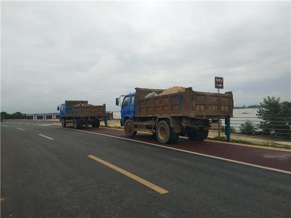 “一旦发生险情,砂卵石等防汛应急抢险物资不能快速到位的话,前期的防汛工作就白做了……”在胭脂湖街道一线防洪大堤上,货车“以车代仓”方式储备防汛物资。面对严峻的雨情、汛情、险情,胭脂湖街道防汛机动抢险队连夜吹响集结号,4台货车、3艘船、1台挖掘机、1台铲车、100名抢险队员迅速集结,在线待命,随喊随到,保证关键时刻能够快速出动、迅速到位、全力抢险,确保防汛工作万无一失。