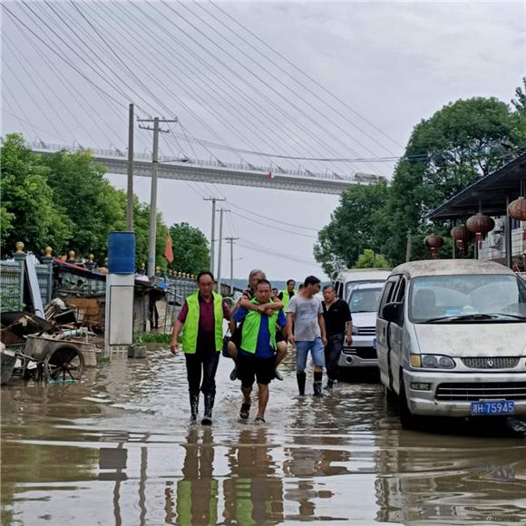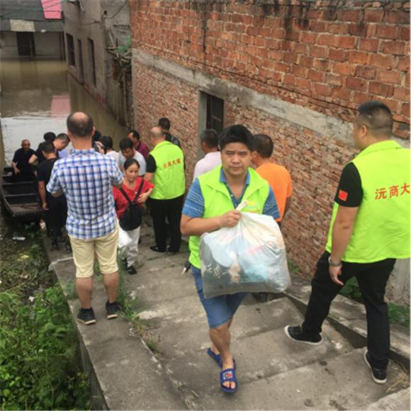 “老人家,您扶稳了啊,这就送您到安全的地方去,您先安心住着!”谢富强正背着家住胜天老渡口70多岁的老奶奶往家门外走。谢富强是商会党支部一名党员,这次抢险救援他自驾小货车帮忙运送受灾群众的行李,身背被洪水困住的老人往安置地转移。