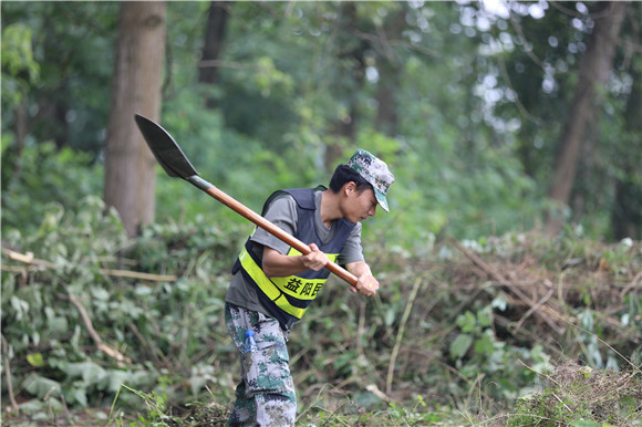 琼湖街道办事处四大队副大队长张磊告诉记者,这个地方本身是清基扫障的一个死角,今天民兵应急分队的扫障任务是进行彻底扫除,对巡逻队今后的查险处险工作提供更好的便利。