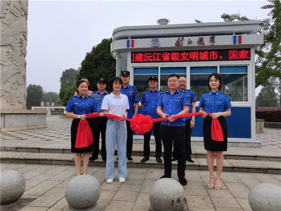 7月18日早上8点,薄薄的晨雾笼罩着江南水城,在蓼叶湖公园附近,笔者看到一座崭新的城管岗亭,岗亭呈浅灰与深蓝相搭配,“沅江城管”四个字和城管标志闪闪发光,岗亭前的电子显示屏滚动播放着“五城同创”的宣传内容,门口城管执法人员拉起了红色缎带,随着城管大队长刘建辉为岗亭投入使用剪彩,身后的城管执法人员欢呼雀跃、迎来阵阵掌声,“我们终于有家了”!