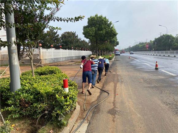 查故障,布线拉线.安装电路板,挖坑填埋,一个个忙得汗流浃背,大家如同纤夫,背拉着长长的缆线,喊着前进的号子,震撼着天穹。烈日当头,汗水遮望眼,缆线蹭皮肉,大家无暇顾及,通过齐心协力,努力奋战,最终5小时完成了抢修亮化任务。