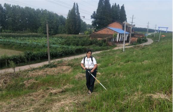 7月22日,大暑,骄阳似火,天气格外炎热。沅江市泗湖山镇的防汛抗洪工作已持续近20天,退水速度宛如抽丝。防汛前期清基扫障本已彻底的大堤边,野草又蹭蹭冒起来了,泗湖山镇的防汛队伍又组织了新一轮的清理。队伍中,有一个身影熟练地使用着割草机除草,仔细一看,竟是位女同志!她就是该镇两鲜中队的王脱险。