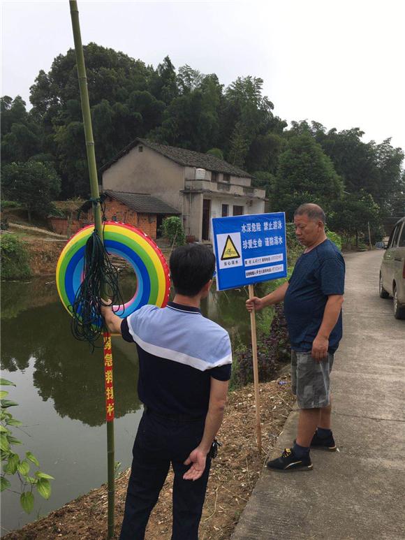 据了解,为切实将防溺水工作落到实处,胭脂湖街道办事处通过“一牌一杆一绳一圈一劝导一救援”六个一为人民生命安全筑牢一道新的安全防线。通过设置一块警示标识牌提醒学生(幼儿)远离水域,配备一根救援竿、一条救援绳、一个救生圈便于应急施救,组织组长、党员或志愿者在水域附近巡查,及时劝阻学生(幼儿)戏水玩耍或私自下河游泳,就近安排会游泳会救援的年轻人担任紧急救援人,并负责救援物资的保管,扎实做好预防溺水和应急救援保障。