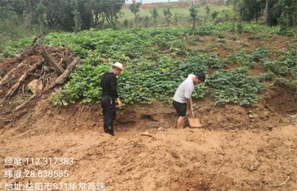 “阳支书,益南高速公路桥下这里发现了一处渗水现象,你快来看看”,一接到巡逻队的报险电话,阳支书立即向马颈上大队报告情况,叮嘱巡逻队员准备好铁锹、砂卵石等物资,又马不停蹄地赶往现场进行查看。