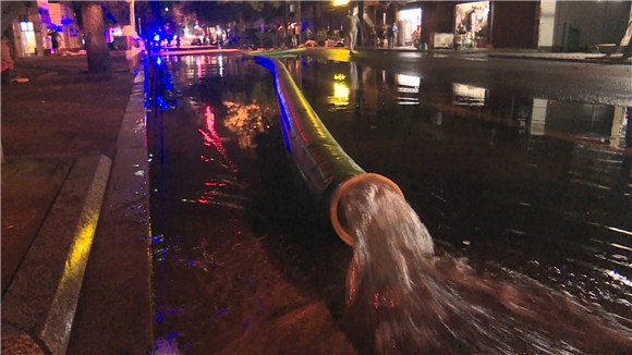 针对城区出现的内涝现象,市城管局、应急管理局、民政局、琼湖街道办事处多部门联动,第一时间进行有效处置。27日晚,在凌云塔社区,市城管局组织应急排积人员和专业设备赶往现场,将道路两侧街道进行交通管制,并组织人员迅速打开溢流井盖,疏通雨水口的杂物,在学校校门前筑起一道沙袋墙,利用应急水泵对积水进行抽排,防止积水进入学校。与此同时,市应急管理局联合琼湖街道办事处对此次内涝受灾商家进行了财产损失摸底。通过连续奋战,该路段的积水已经导流消退,道路没有出现大面积的积水,市民生活出行不受影响。